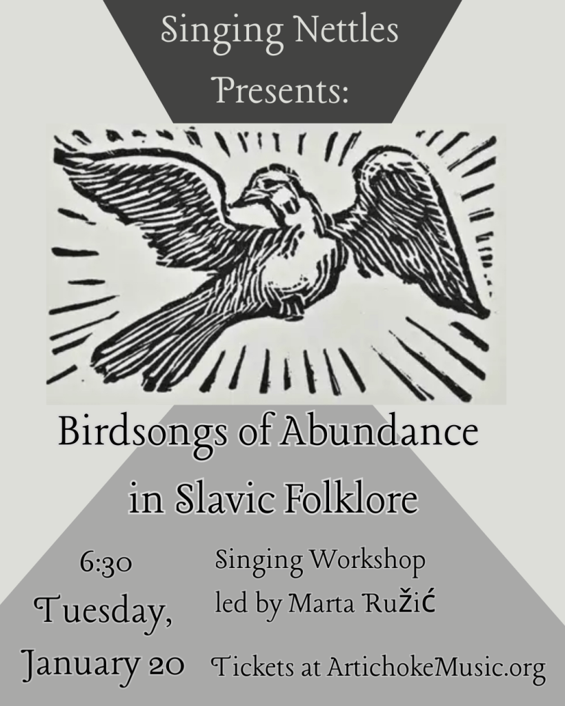 Workshop teachers bring songs from a variety of cultures, not always but mostly stemming from American and European folk traditions. Depending on the theme of the evening, we may focus on harmonies, vocal technique, foreign language lyrics, or history of songs and traditions.
