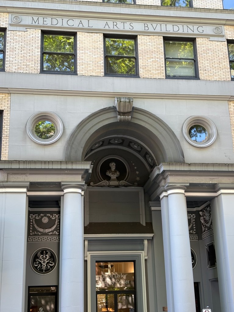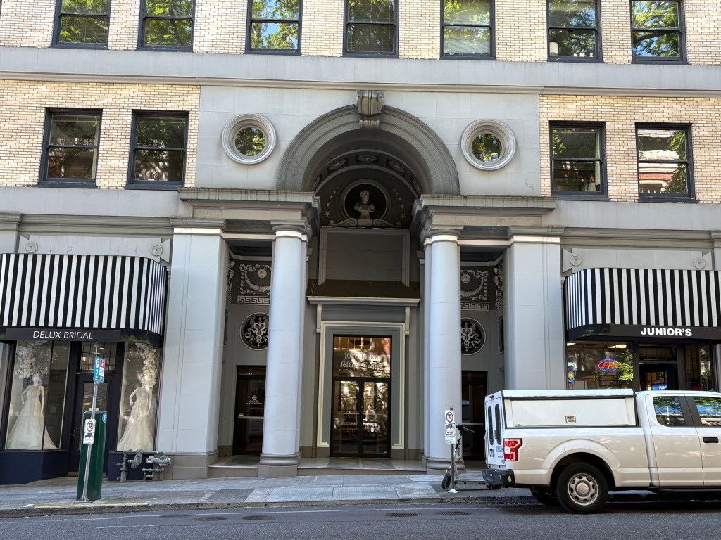 The Jeffrey Center is fully accessible, with a small ramp to the front door, and elevators to reach the 7th floor. The Beehive Bodywork studio has north-facing windows with a view of the Portland Central Library, which was built in 1913. The historic Jeffrey Center is almost as old – built in 1925.